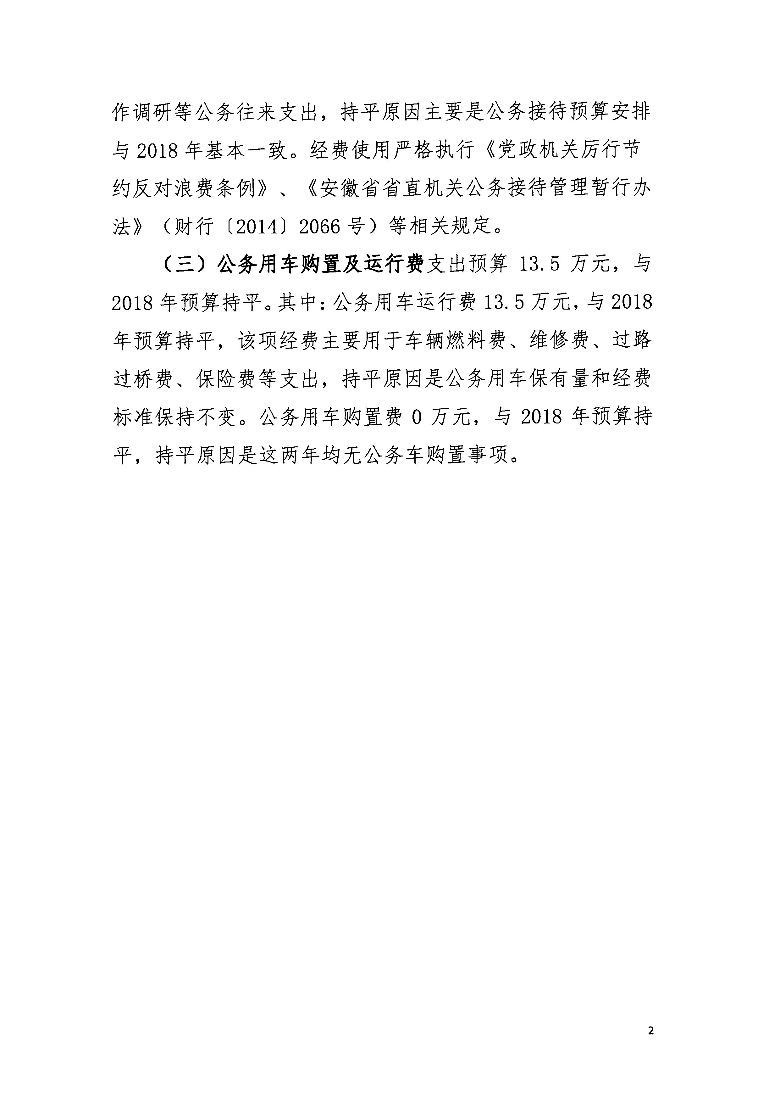 安徽省农垦事业管理局2019年“三公”经费预算